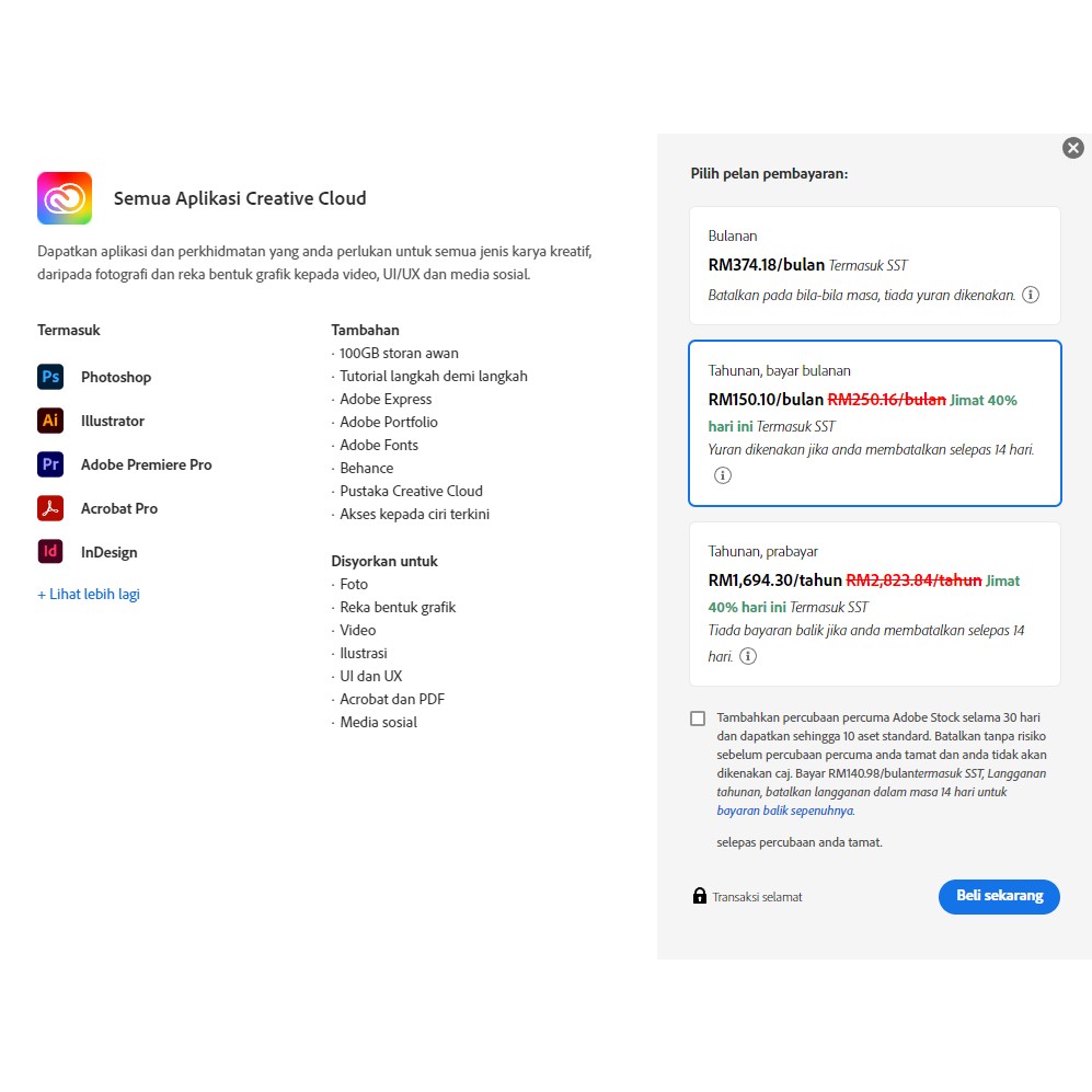 3. The retail pricing on Adobe is 40,023.84/yr and we're selling at RM 16000+!